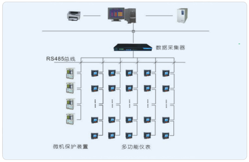系統(tǒng)采用Acrel-2000型電力監(jiān)控系統(tǒng),分別在東西區(qū)各設(shè)置一套電力監(jiān)控系統(tǒng),實(shí)現(xiàn)對(duì)萬(wàn)聯(lián)城東西區(qū)高低壓配電回路的實(shí)時(shí)監(jiān)控,有利于用電管理。另一方面,電力監(jiān)控系統(tǒng)不僅能夠準(zhǔn)確的表示出回路的用電狀況,它還具備網(wǎng)絡(luò)通訊等功能,能夠與計(jì)算機(jī)、串口服務(wù)器等設(shè)備進(jìn)行組合,從而實(shí)現(xiàn)遠(yuǎn)程監(jiān)控。