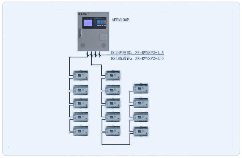 本項(xiàng)目承接其消防設(shè)備電源監(jiān)控系統(tǒng),通過對(duì)其樓層分布的20塊AFPM3-2AV型消防電源監(jiān)控模塊的數(shù)據(jù)采集,完成在AFPM100主機(jī)的電壓狀態(tài)數(shù)據(jù)的實(shí)時(shí)顯示、報(bào)警。