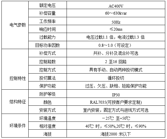 適用于頻率50Hz電壓0.4kV電網(wǎng)的無功功率自動(dòng)補(bǔ)償。