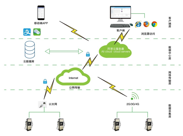 立即咨詢安科瑞Acrelcloud-充電樁收費(fèi)運(yùn)營云平臺系統(tǒng)通過物聯(lián)網(wǎng)技術(shù)對接入系統(tǒng)的充電樁站點(diǎn)和各個充電樁進(jìn)行不間斷地?cái)?shù)據(jù)采集和監(jiān)控,同時對各類故障如充電機(jī)過溫保護(hù)、充電機(jī)輸入輸出過壓、欠壓、絕緣檢測故障等一系列故障進(jìn)行預(yù)警;用戶通過微信小程序掃描二維碼進(jìn)行支付后,系統(tǒng)發(fā)起充電請求,控制二維碼對應(yīng)的充電樁完成電動汽車的充電過程。