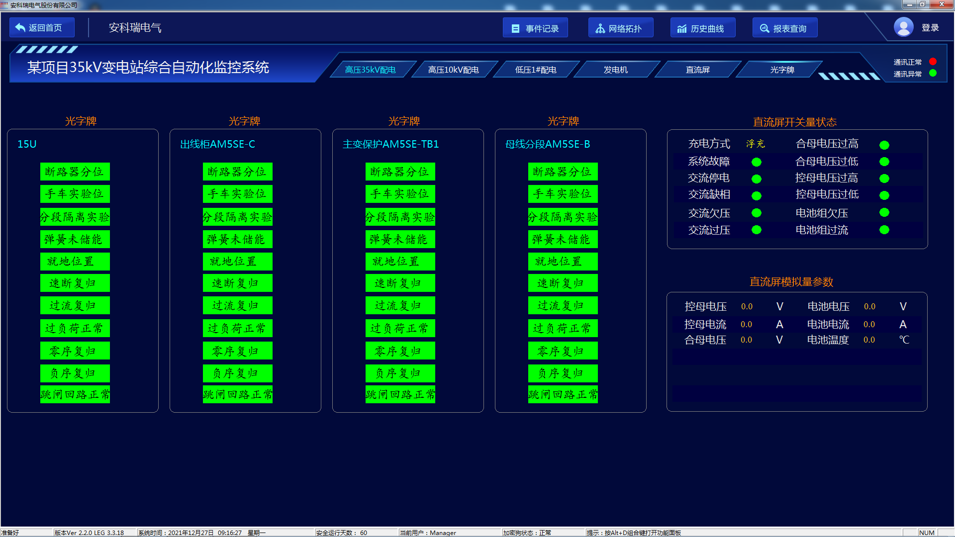 Acrel-1000綜合自動化監(jiān)控系統(tǒng)可以直觀顯示一次系統(tǒng)圖,并實時顯示各電壓等級各回路的遙測量、遙信量和報警信號等。